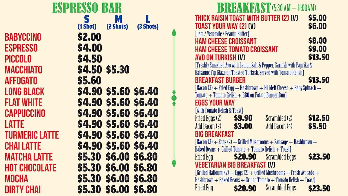 - Coffee and Breakfast: A selection of coffee beverages designed to complement morning meals, including freshly baked pastries available just from the oven.
