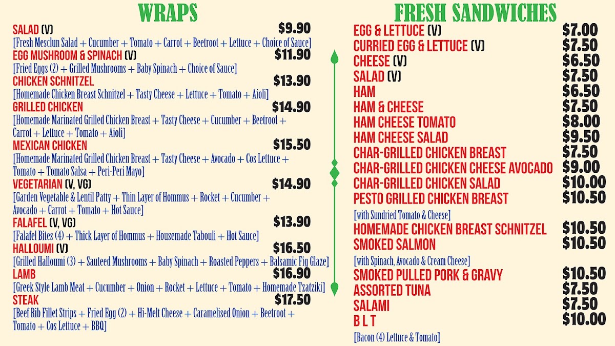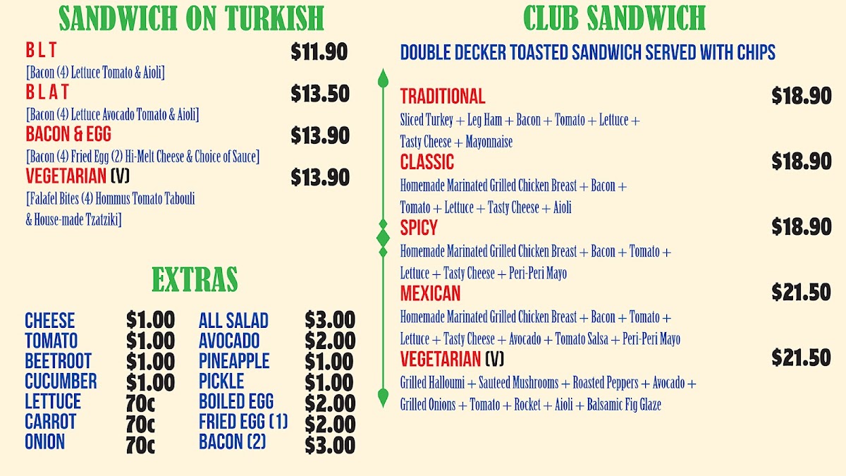 - Wraps and Sandwiches: Various wraps and sandwiches, including club sandwiches and those served on Turkish bread, offering convenient and portable meals.