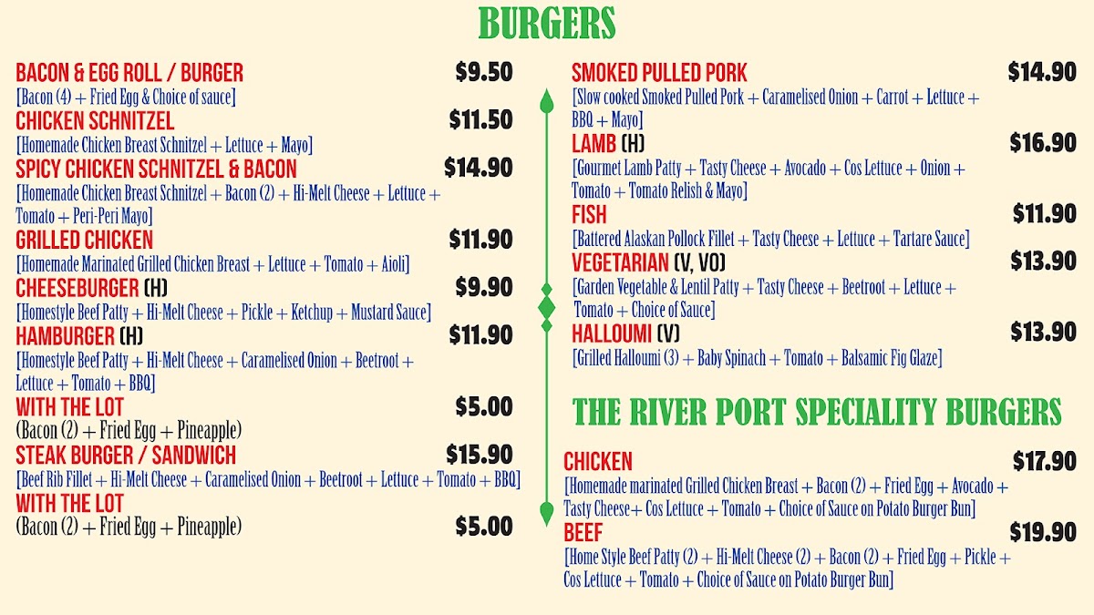 The River Port Cafe Menu